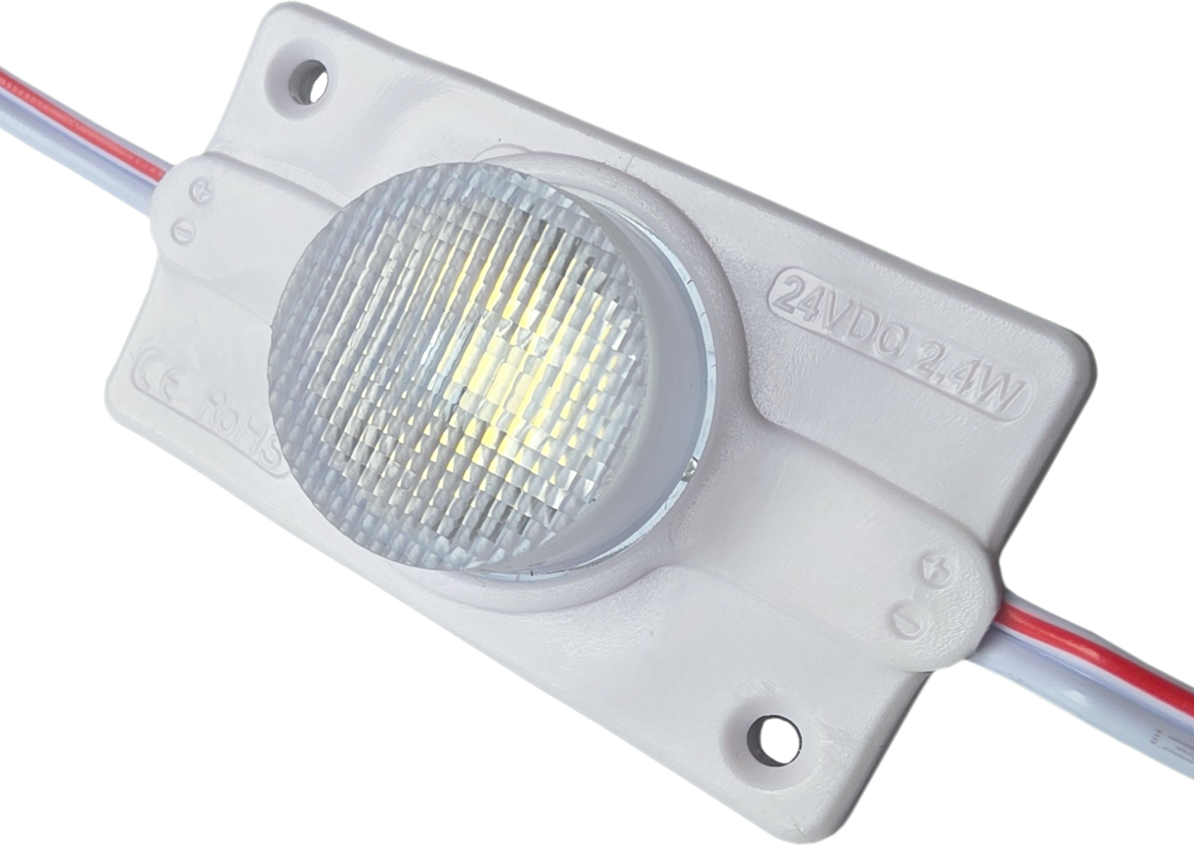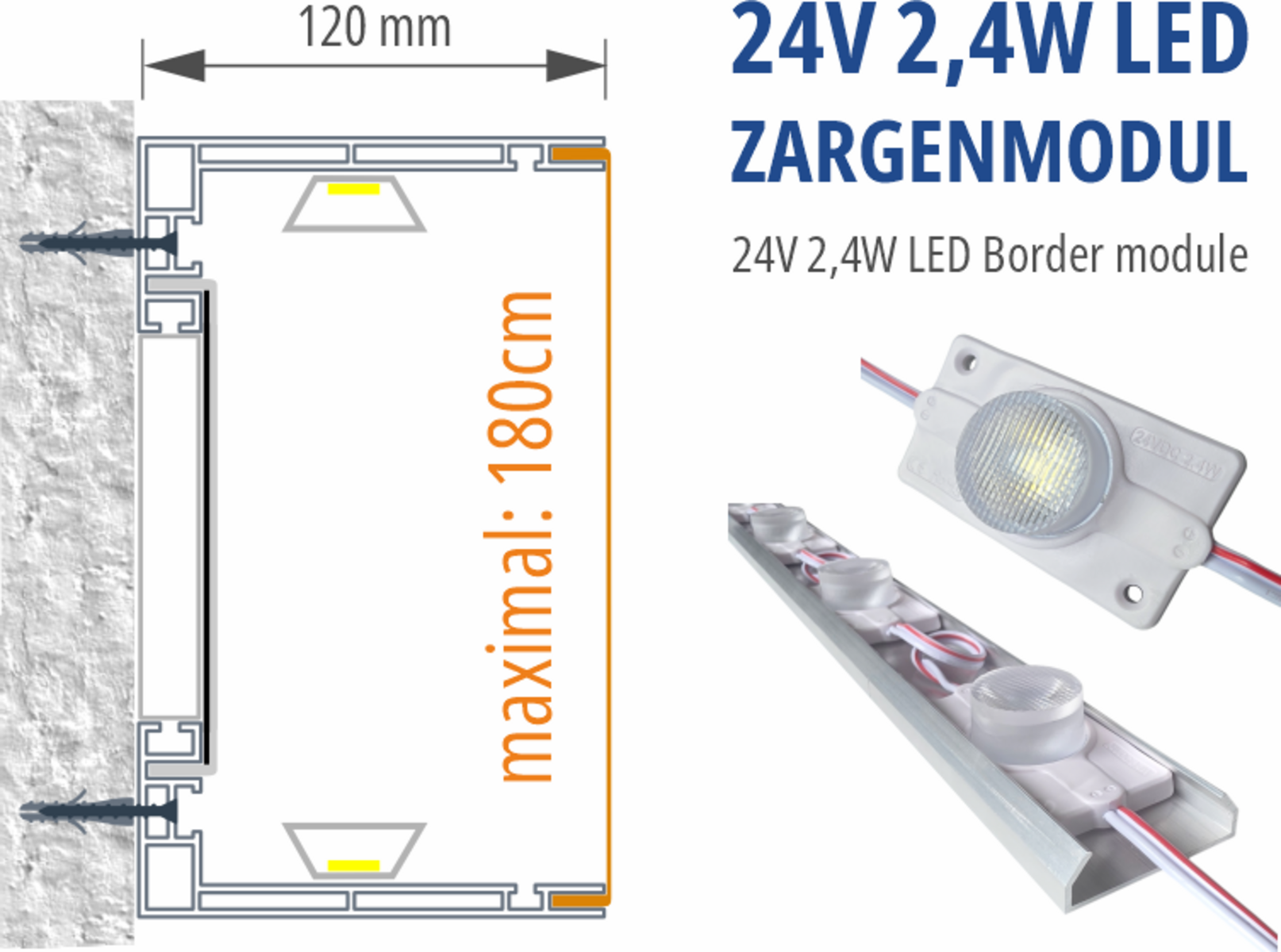 Das 24V LED-Zargenmodul bietet eine Leistung von 2,4 W je Linse und eine Lichtleistung von 200 Lumen pro Modul in der Farbtemperatur 6500K. Es eignet sich ideal für den Einsatz in einseitigen Profilen ab Eco90es sowie in doppelseitigen Profilen ab Eco130bs, jeweils bei einer Einstrahltiefe von 130–150 cm.Die Module sind nach jedem Segment teilbar, was maximale Flexibilität bei der Montage ermöglicht. Eine direkte Dimmung per PWM ist problemlos möglich und erlaubt eine einfache Helligkeitsregelung über gängige Controller. Für eine schnelle Vorinstallation ist die Rückseite mit doppelseitigem Klebeband ausgestattet. Zusätzlich ist das Modul kompatibel mit LED-Rail-Systemen, wodurch die Montage noch effizienter und sauberer erfolgt.Empfohlen werden etwa 10 Module pro Meter, um eine gleichmäßige und professionelle Ausleuchtung der Leuchtkästen zu gewährleisten. Das LED-Zargenmodul überzeugt durch seine hohe Effizienz, einfache Handhabung und optimale Lichtverteilung für Anwendungen in der Werbetechnik.