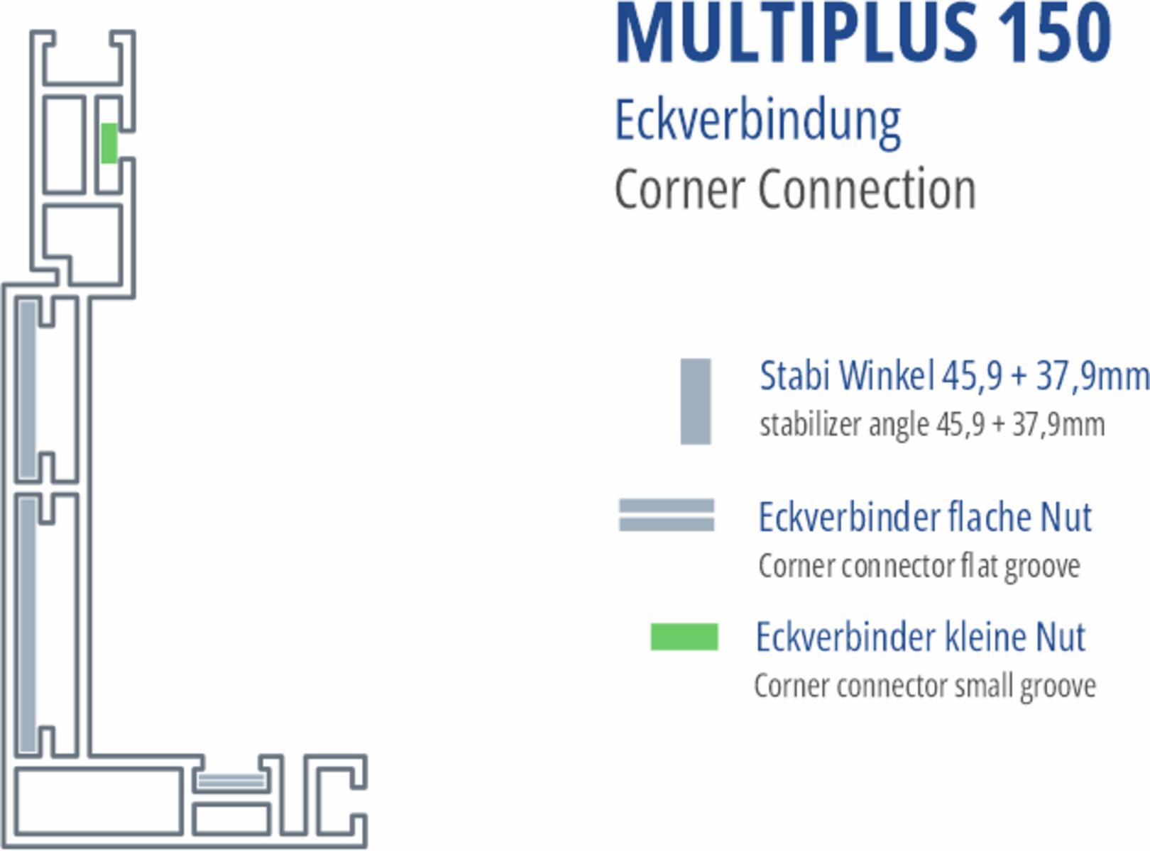 Dieses Set besteht aus 4 Stück Eckverbindern kleine Nut, 4 Stück Eckverbindern flache Nut, 4 Stück Stabis 45,9mm und 4 Stück 35,9mm.