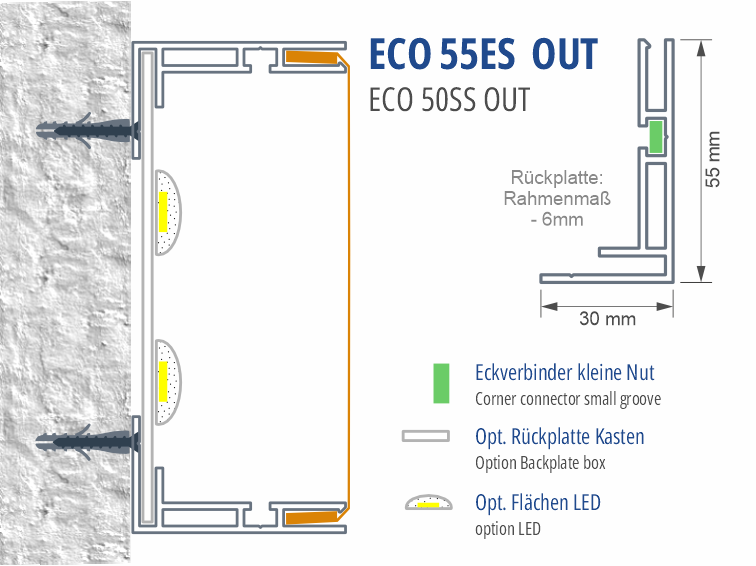 Das Profil für superschlanke, beleuchtete Gummilippenspannrahmen im AUSSENBEREICH! Der Widerhaken am innenliegenden Steg sorgt für absolut sicheren Halt des Spanntuches OHNE jegliche zusätzliche Sicherung!