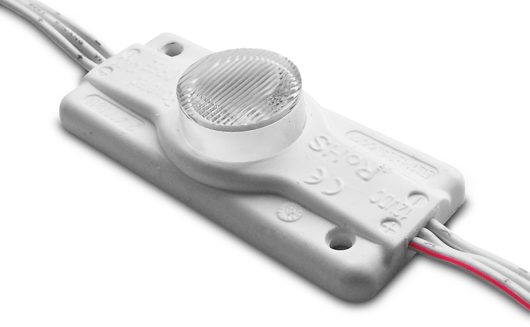 Das 24V LED-Zargenmodul bietet 2,8 W je Linse und eine Lichtleistung von 200 Lumen pro Modul bei einer Farbtemperatur von 6500K. Mit seiner IP67-Schutzklasse ist es sowohl für den Innen- als auch den Außenbereich bestens geeignet. Empfohlen werden etwa 9–10 Module pro Meter, um Leuchtkästen gleichmäßig und zuverlässig auszuleuchten. Die Module sind nach jedem Segment teilbar und bieten dadurch maximale Flexibilität beim Einbau. Sie eignen sich ideal für den Einsatz in einseitigen Profilen ab Eco 120es sowie in doppelseitigen Profilen wie Eco 200bs, jeweils bei einer Einstrahltiefe von 150–300 cm. Über die separate Dimmleitung kann die Helligkeit komfortabel per 1–10V-Controller geregelt werden – eine PWM-Dimmung direkt über die Zuleitung ist nicht vorgesehen. Für eine schnelle Vorinstallation ist die Rückseite mit doppelseitigem Klebeband ausgestattet; alternativ ermöglicht die Kompatibilität mit LED-Rail-Systemen eine besonders effiziente Montage. Das Modul überzeugt als langlebige und energieeffiziente Lösung für professionelle Leuchtkasten-Anwendungen.