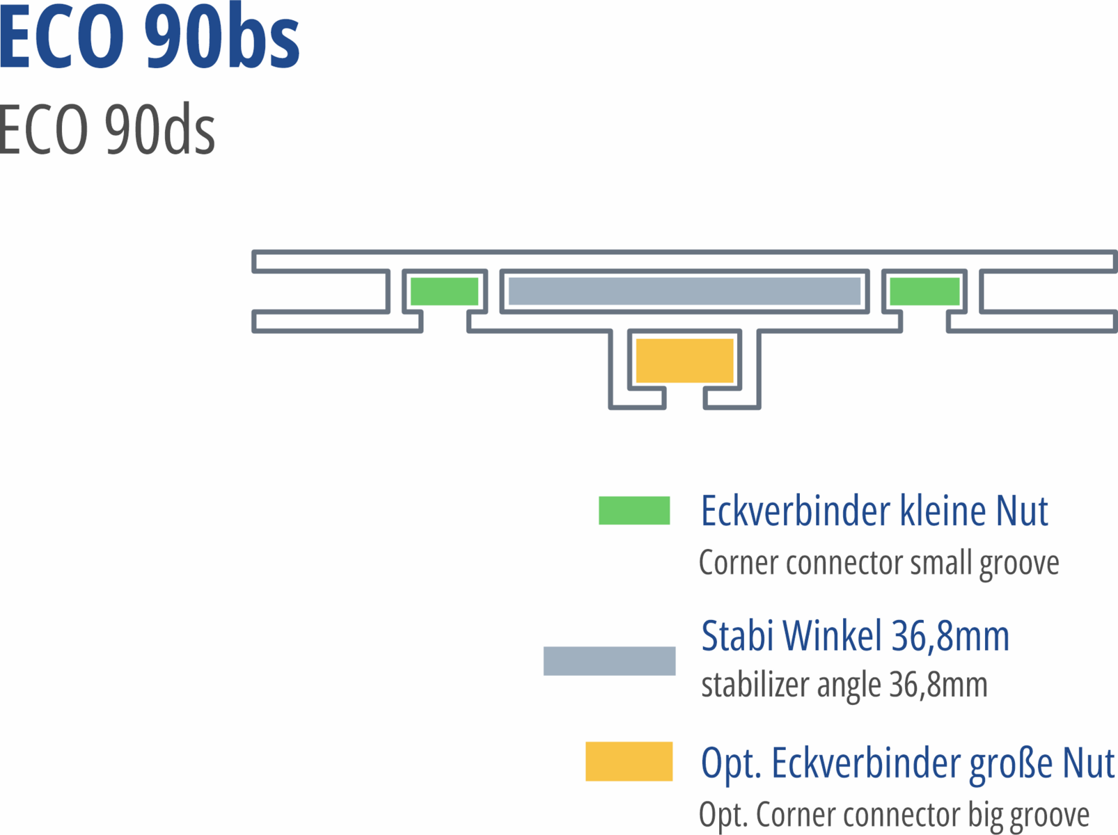 90 mm schlankes Profil zur Herstellung beidseitig leuchtender Anwendungen. Sofern eine der beiden Rahmenseiten ca. 120 cm nicht überschreitet, werden über die Zarge gute Ausleuchtungsergebnisse erzielt. Dank der Verstrebungsaufnahme lassen sich auch großformatige Anwendungen wie Deckenkränze effizient realisieren – besonders vorteilhaft in Kombination mit unserem Innen- und Außeneckprofil. Mit unserem Plexiadapter kann beidseitig anstelle von Spanntuch mit Gummilippe auch Plattenmaterial bis zu 5 mm Stärke eingesetzt werden.