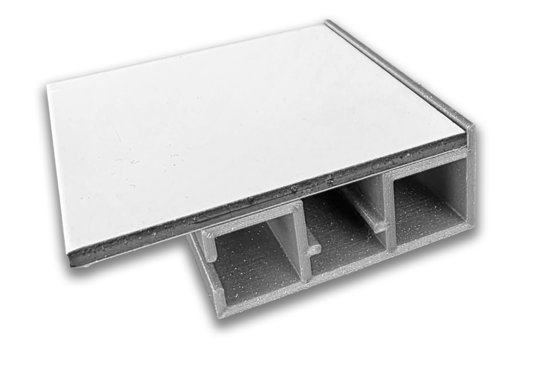 Die Platten werden sauber im Rahmen eingefasst. Das Profil kann zusätzlich verstrebt werden. Es gibt zwei Klebeflächen für 1,5cm breites doppelseitges Klebeband. Für große Anwendung kann die Platte auch auf den Streben verklebt werden.