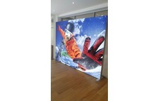 Beleuchteter Aufsteller. Sehr einfacher, werkzeugloser Auf- und Abbau. Leicht und gut geschützt transportierbar in der mitgelieferten Tasche.